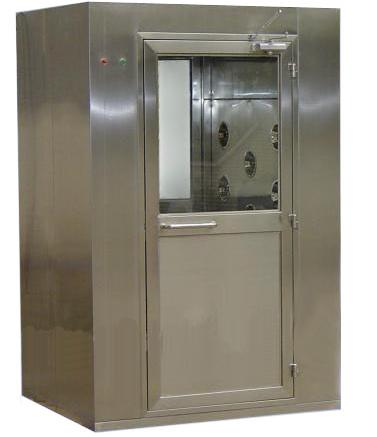 风淋室是进入无尘车间所必备的通道,它可以减少人进出无尘车间时所带来的污染问题。风淋室的两道门是采用电子互锁,可以兼起所闸室的作用,防止未被净化的空气流入无尘车间,降低人员进出无尘车间时的尘埃对无尘车间的污染。当人员进入风淋室后,高速洁净气流经高效过滤器过滤后由可旋转喷嘴从各个方向喷射至人身上,有效而迅速清除衣着所携带的尘埃粒子,带有尘埃粒子的空气再由初、高效过滤器过滤后重新循环到风淋区域内。